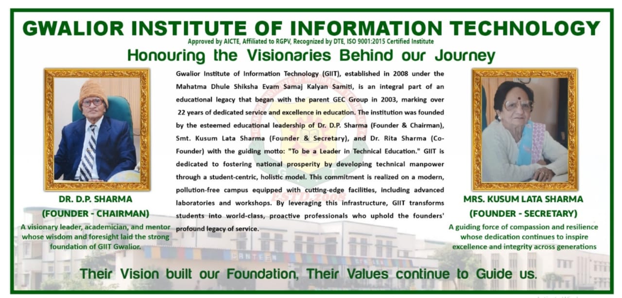 Mahatma Dhule Education Society has established a chain of Institutions Nationality and Internationality in this chain the Gwalior Institute of Information Technology popularly known as GIIT is established in city Gwalior is a part of GEC Group of Colleges.